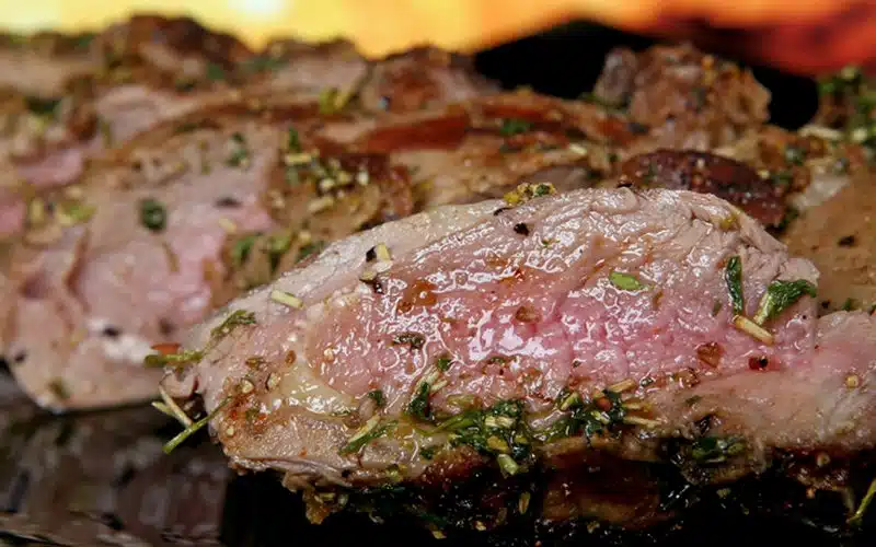 Srneće pečenje ukrasimo gljivama. Srneća leđa ispečena na gore opisani način ili izrezani but garniramo malim šampinjonima koje smo pirjali na maslacu sa sokom od limuna i zakuhali s malo svijetlog umaka, kiselim vrhnjem i peršunom, ili punjenim srmčcima ili jelen-gljivama (gomoljačama).